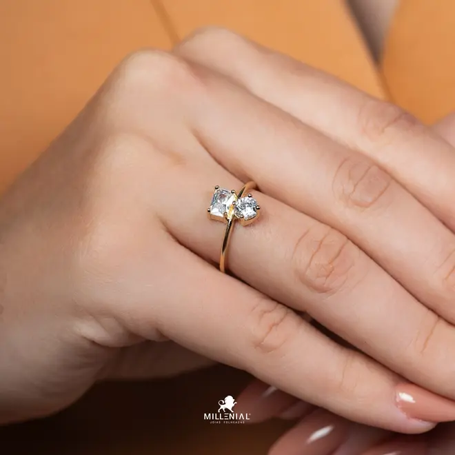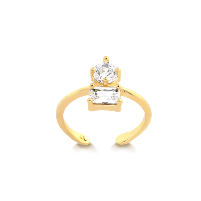 Anel Aberto Zircônia Redonda e Quadrada Folheado a Ouro 18k