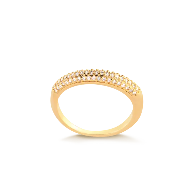 Com seu design elegante e cravejado de zircônias luminosas, ele foi pensado para ser o parceiro ideal da sua aliança ou de outro anel especial. Sozinho, ele é um toque de sofisticação; em conjunto, ele transforma e eleva, assim como a sua resiliência transforma cada desafio em uma nova camada de força. Cada zircônia cintilante representa um passo, uma conquista, uma pequena vitória que, juntas, compõem o seu brilho único.