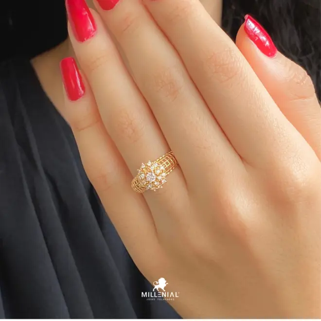 Anel Chuveirinho Telado Folheado a Ouro 18k