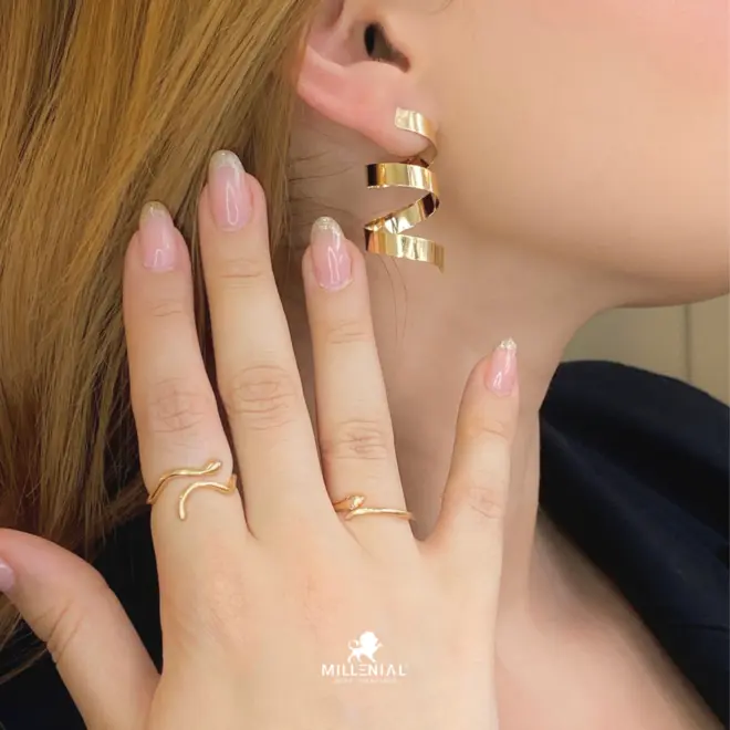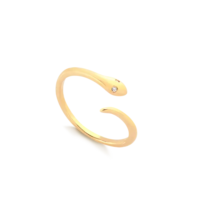 Com um design que se enrosca no dedo de forma fluida e elegante, este anel celebra a renovação contínua. A zircônia cravejada nos olhos da serpente captura a luz, simbolizando a clareza de visão e a sabedoria adquirida em sua jornada de superação. O corpo da cobra, folheado a ouro 18k, representa a vitalidade, a energia e a força vital que impulsionam o seu renascimento.
