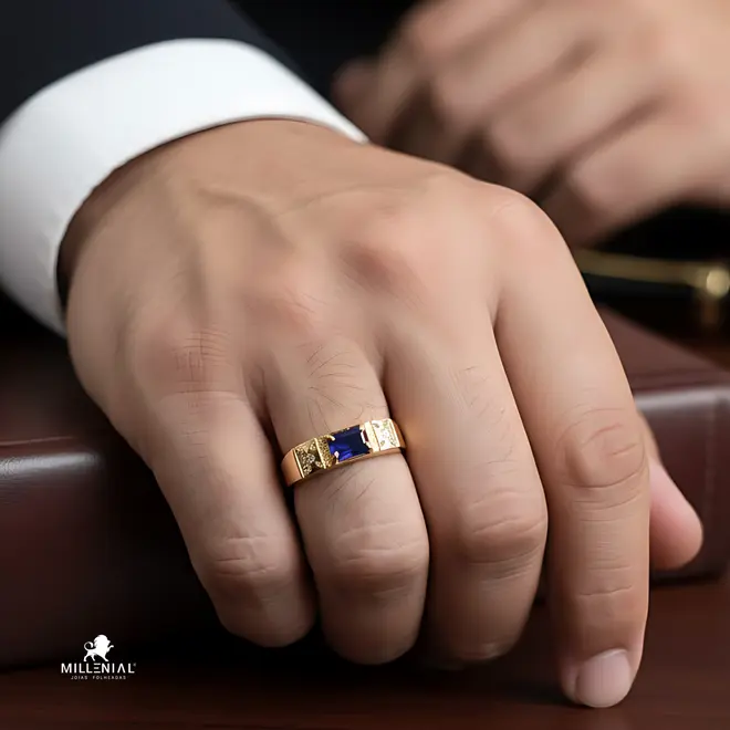 - Anel de Formatura Masculino Folheado a Ouro 18k
