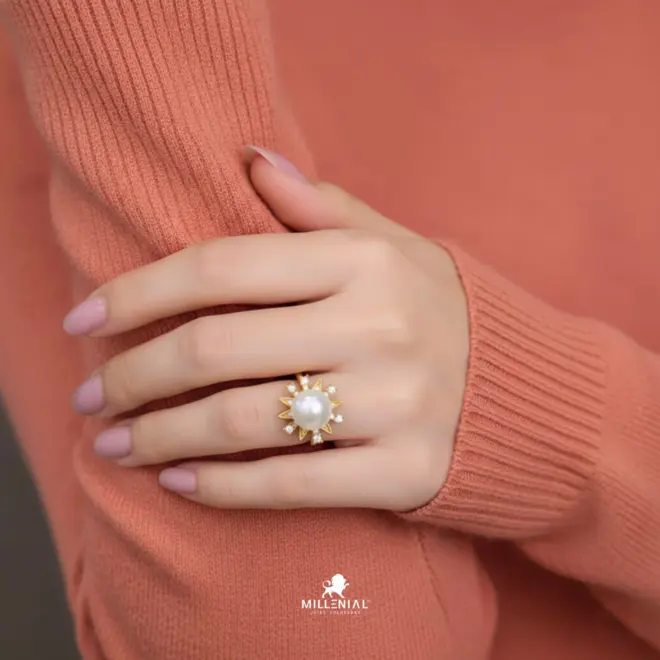 Anel Estrela Cravejada com Pérola Folheado a Ouro 18k