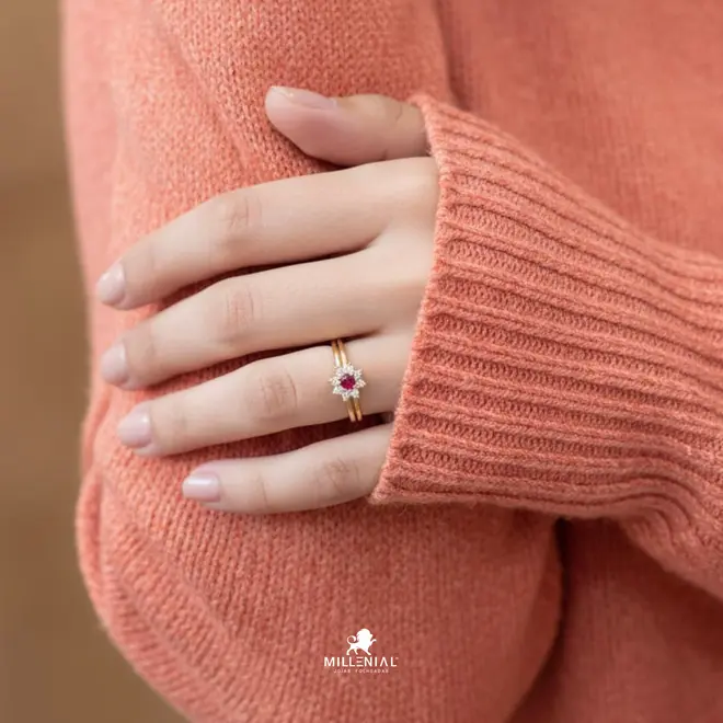 - Anel Flor Com Pedras de Zircônia Folheado a Ouro 18K