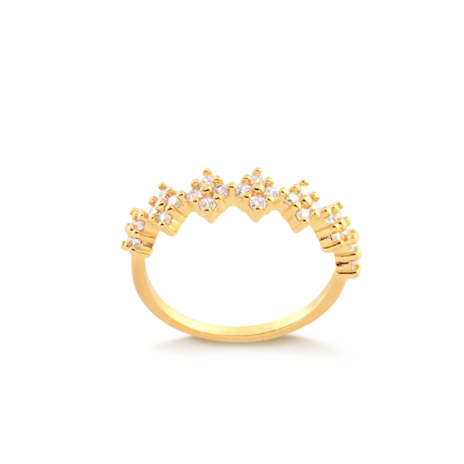 Folheado a ouro 18k, o anel irradia um calor que nutre, como o sol que incentiva a flor a desabrochar. O brilho intenso das zircônias captura a luz de forma espetacular, simbolizando o seu brilho interior que, uma vez redescoberto, nunca mais se apaga.