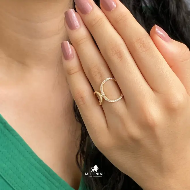 Anel Liso Curvas Cravejado de Zircônia Folheado a Ouro 18k