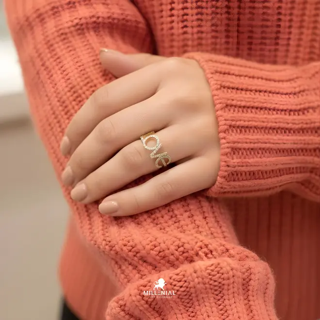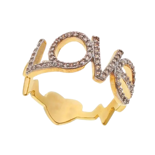 Anel Love Cravejado Com Pedras de Zircônia Folheado a Ouro 18k