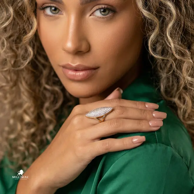 - Anel Marquise Marilda Com Pedras De Zircônia Folheado a Ouro 18k