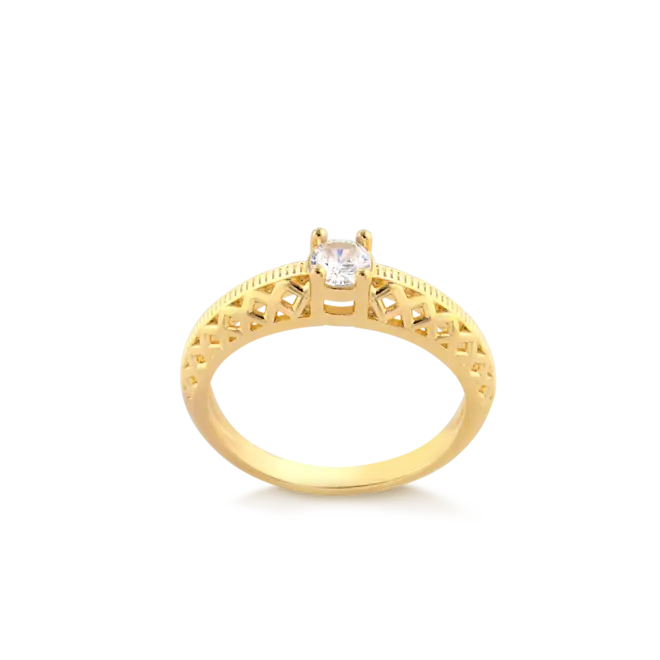Anel Pedra Redonda Lateral Vazada Folheado a Ouro 18k