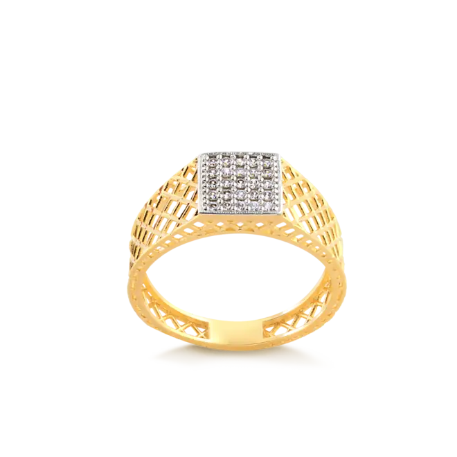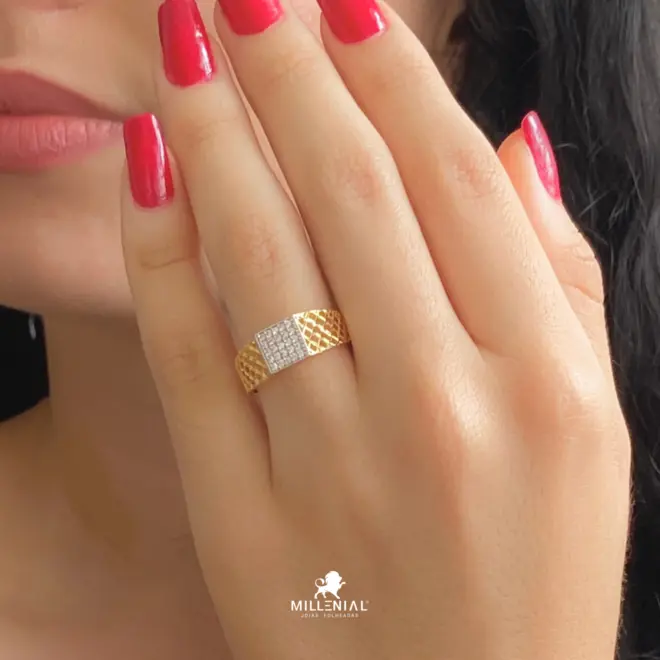 Anel Telado Quadrado Com Zircônias Folheado a Ouro 18k