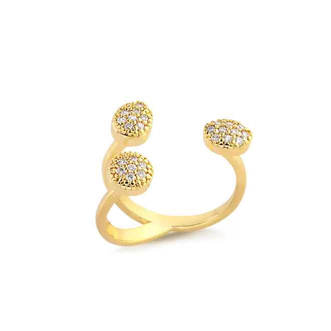 Anel Três Gotas Cravejadas Folheado a Ouro 18k