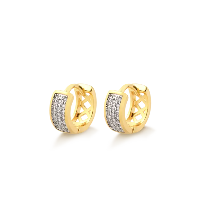 Argola Click Cravejada Com Zircônia Folheada a Ouro 18k