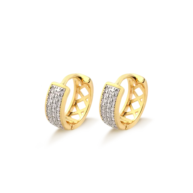 Argola Click Cravejada Com Zircônia Folheada a Ouro 18k
