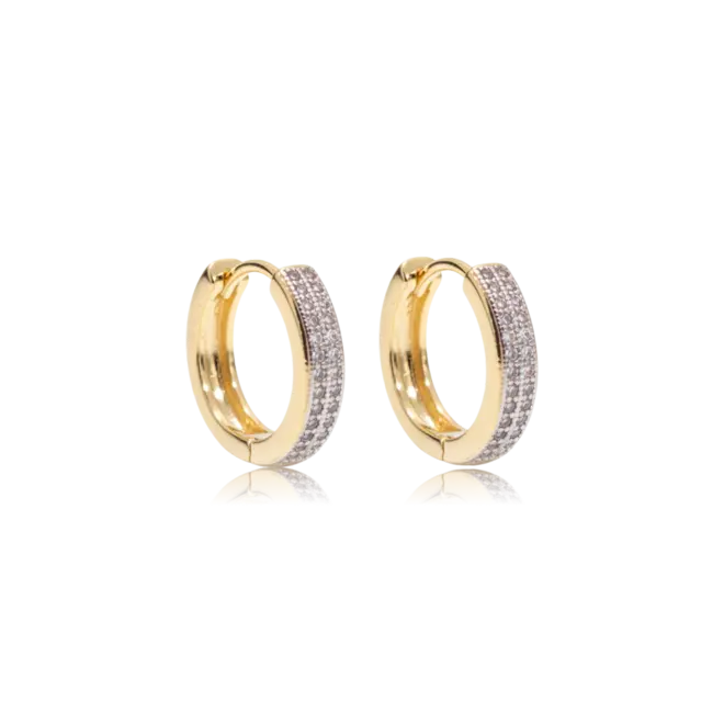 Argola Click 14mm Cravejada Folheada a Ouro 18k