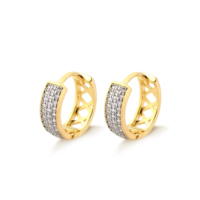 Argola Click Cravejada Com Zircônia Folheada a Ouro 18k