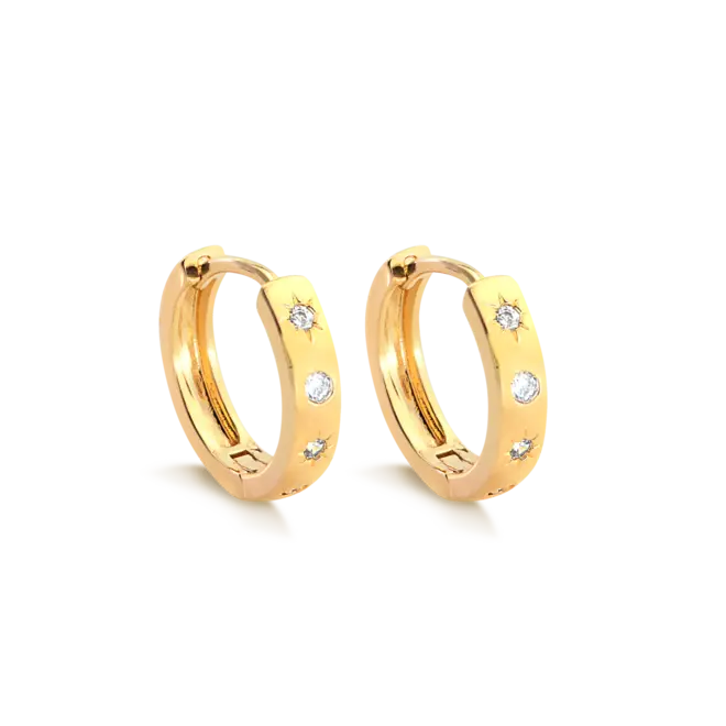 Argola Click 15mm Zircônia Cosmos Folheada a Ouro 18k