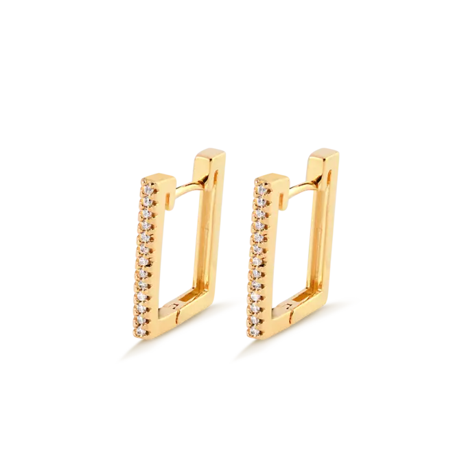 Argola Click 16mm Retangular Cravejada Com Zircônia Folheada a Ouro 18k