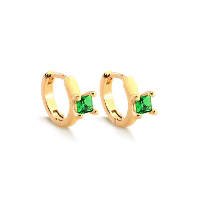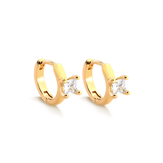 Argola Click Zircônia Quadrada Folheada a Ouro 18k