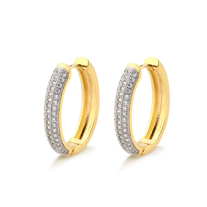 Argola Cravejada Com Zircônia Folheada a Ouro 18k
