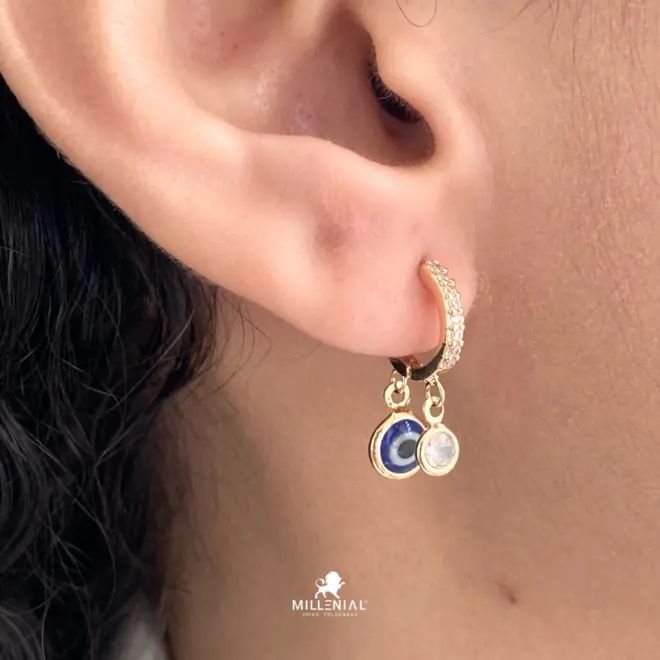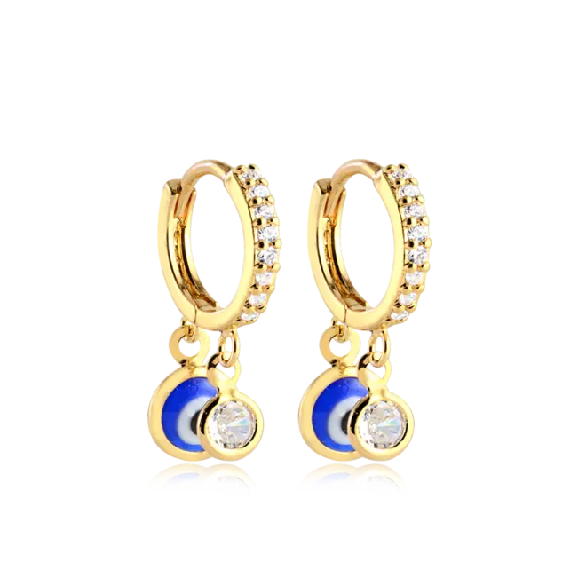 Argola Cravejada Olho Grego Ponto de Luz Folheada a Ouro 18k