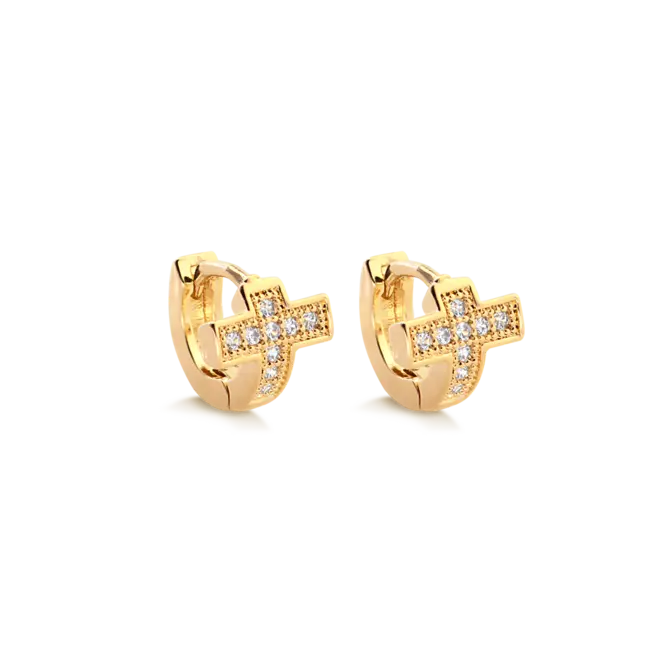 Argola Cruz Cravejado Folheada a Ouro 18k