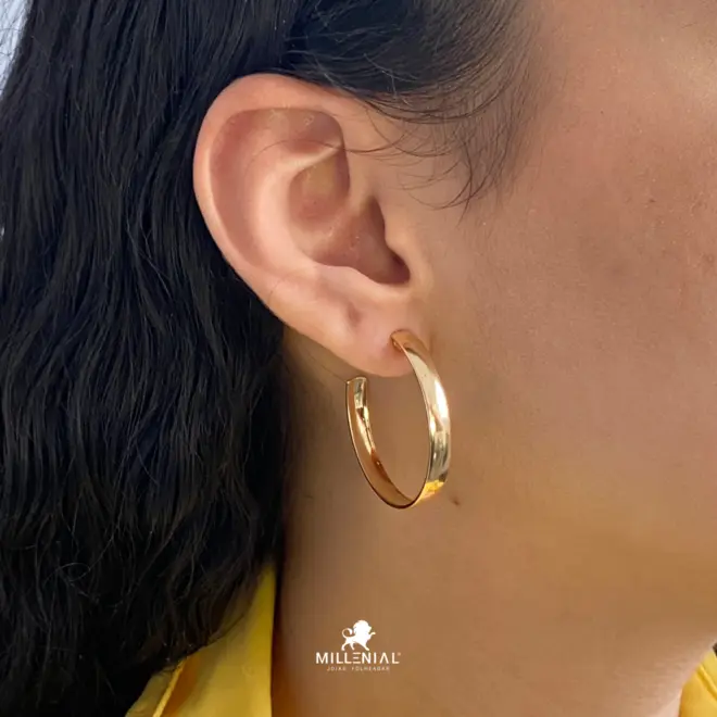 Argola Lisa 35mm Folheada a Ouro 18k