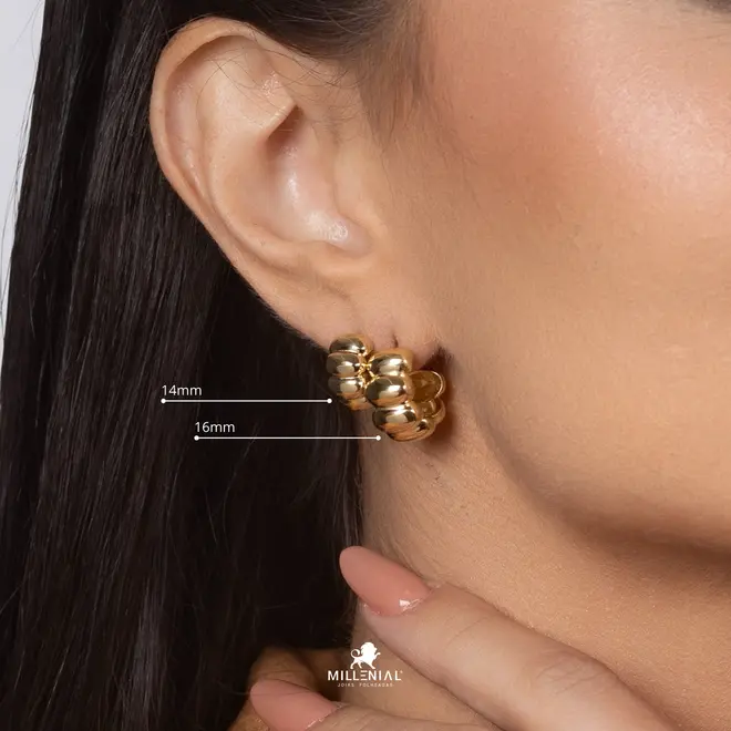 Argola Lisa Gomos 14mm Folheada a Ouro 18k