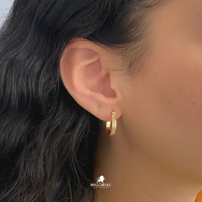 Esta argola pega um design atemporal e o transforma em uma peça vibrante e cheia de luz. Com o tamanho prático e confortável de 15mm, estilo "huggies", ela é perfeita para o dia a dia, mas seu acabamento especial a torna tudo, menos básica.