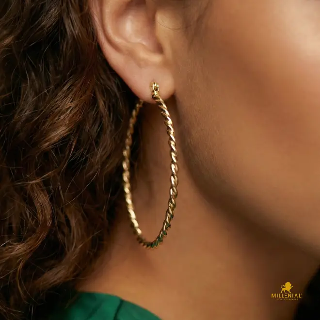 Argola Trançada 52x52mm Folheada a Ouro 18k