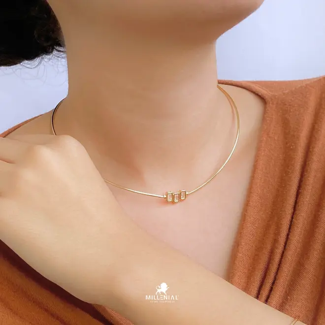 Aro Trio de Zircônia Retangular Folheado a Ouro 18k