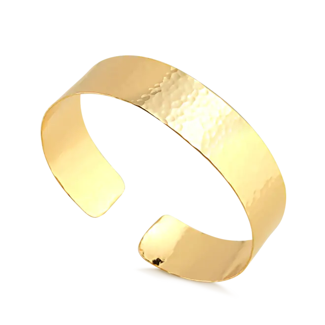 Bracelete Aberto Texturizado 15mm Folheado a Ouro 18K | Coleção Lumine