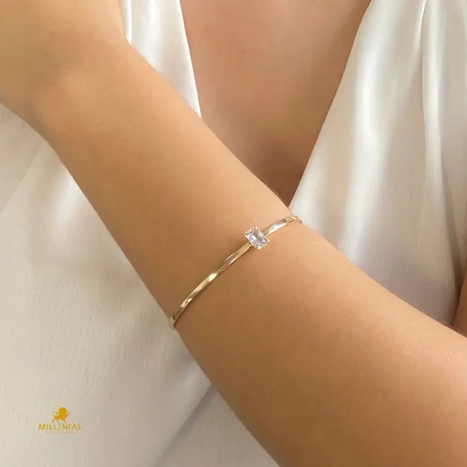 Bracelete Perfil Reto Pedra Solitária Folheado a Ouro 18K | Toque de Luz da Lumine