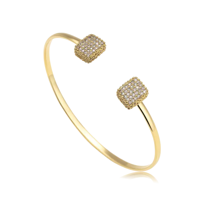 Bracelete Retangular Duplo Cravejado Folheado a Ouro 18k