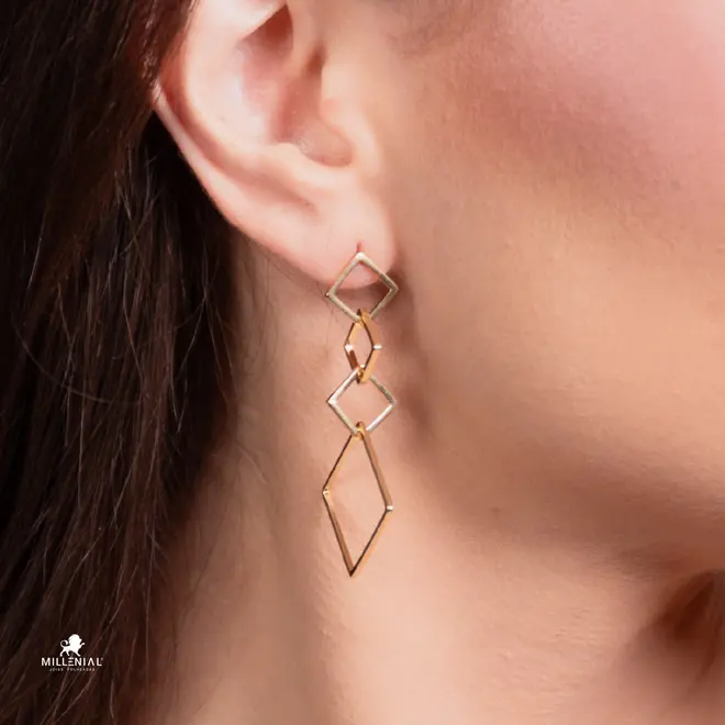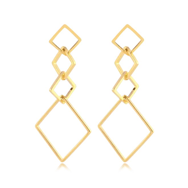 Brinco 4 Aros Quadrados Folheado a Ouro 18k
