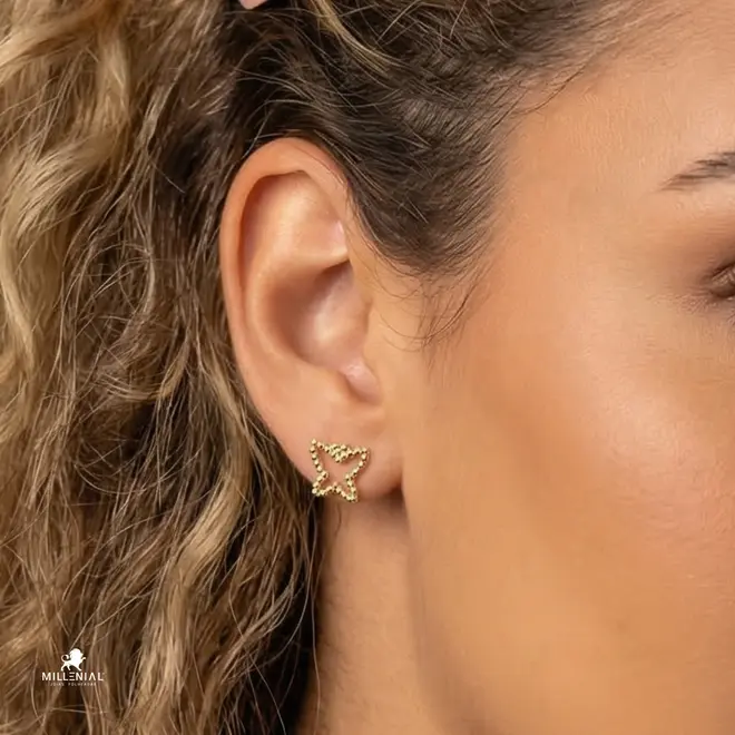 Brinco Borboleta Vazada Folheada a Ouro 18k