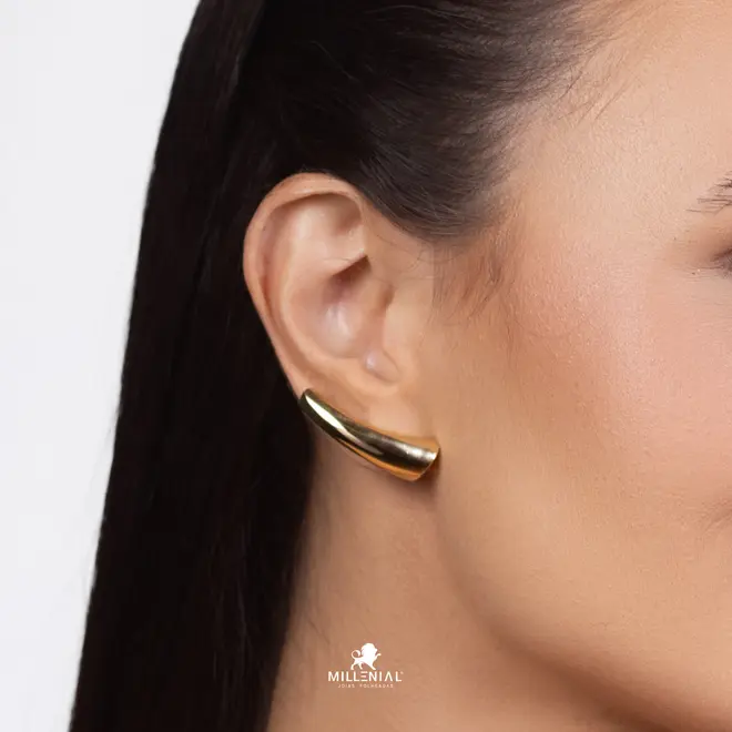 Brinco Curvado Liso Folheado a Ouro 18k