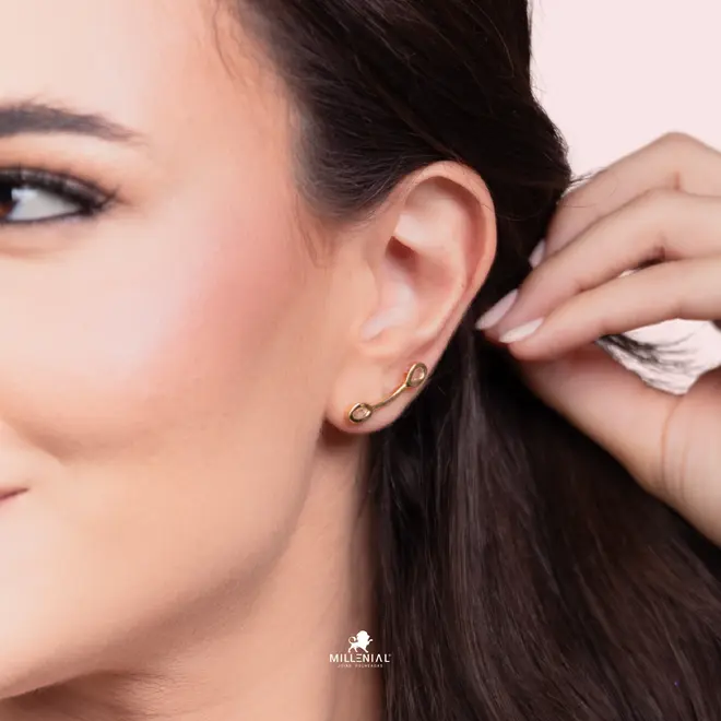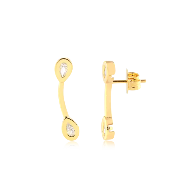 Brinco Ear Cuff Dupla Gota Zircônia Folheado a Ouro 18k