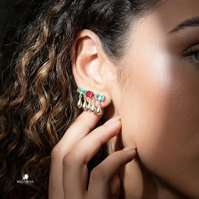 Brinco Ear Cuff Gotas com Pedras de Zircônia Folheado a Ouro 18k