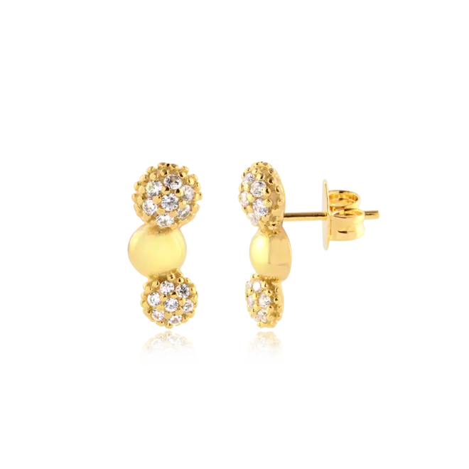 Brinco Esferas Cravejadas Folheado a Ouro 18k