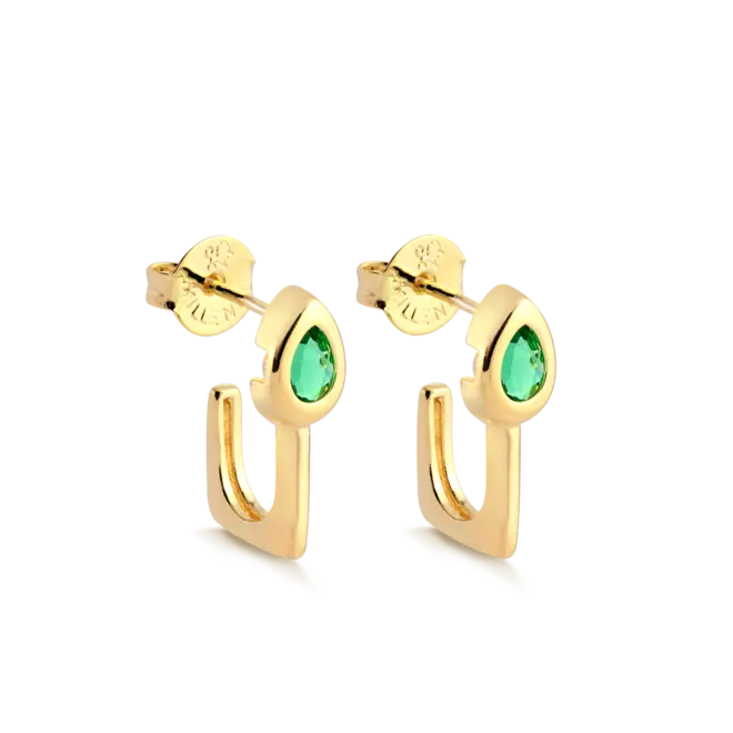 Folheado a um luminoso banho de ouro 18k, este brinco é um ponto de cor e de luz que ilumina o rosto e a alma. É um lembrete de que, após a chuva, sempre vem o verdejar, e que a sua capacidade de se curar é a sua maior força.