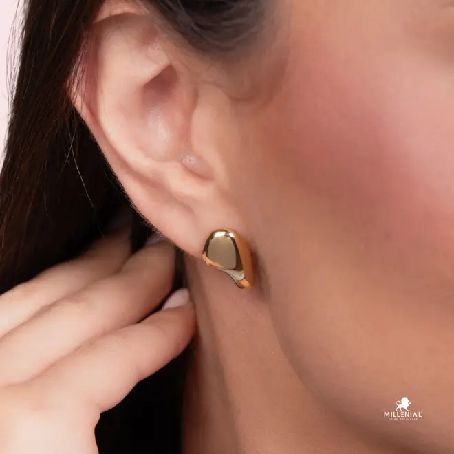 Brinco Orgânico Liso Folheado a Ouro 18k