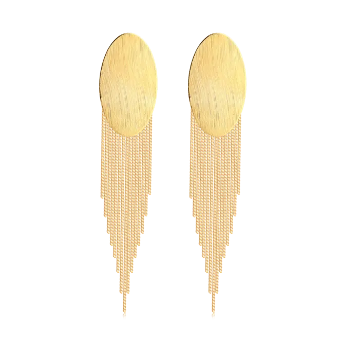 Brinco Oval Liso Franja Folheado a Ouro 18k