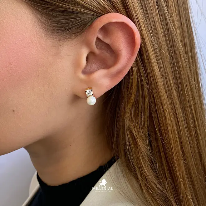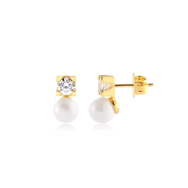 Brinco Perolado Zircônia Quadrada Folheado a Ouro 18k