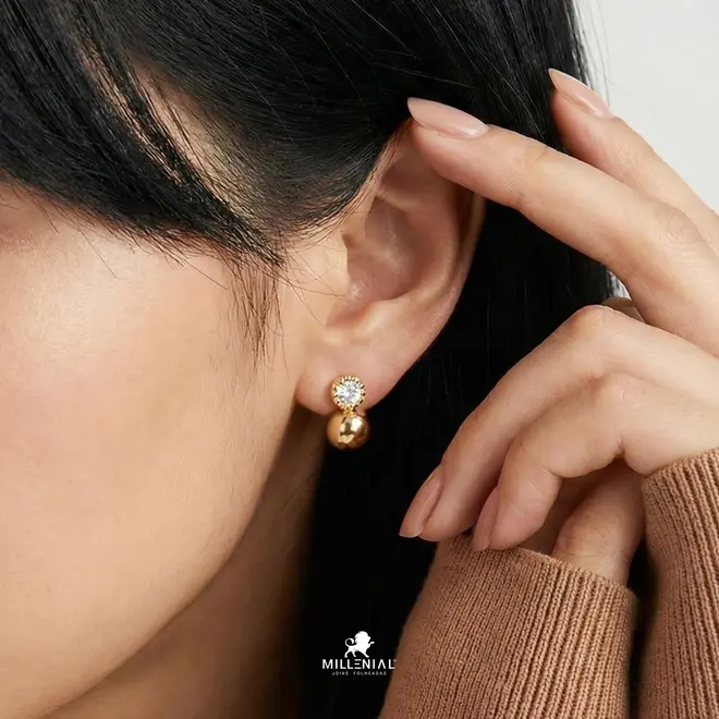Brinco Ponto de Luz Bolas Lisas Folheado a Ouro 18k