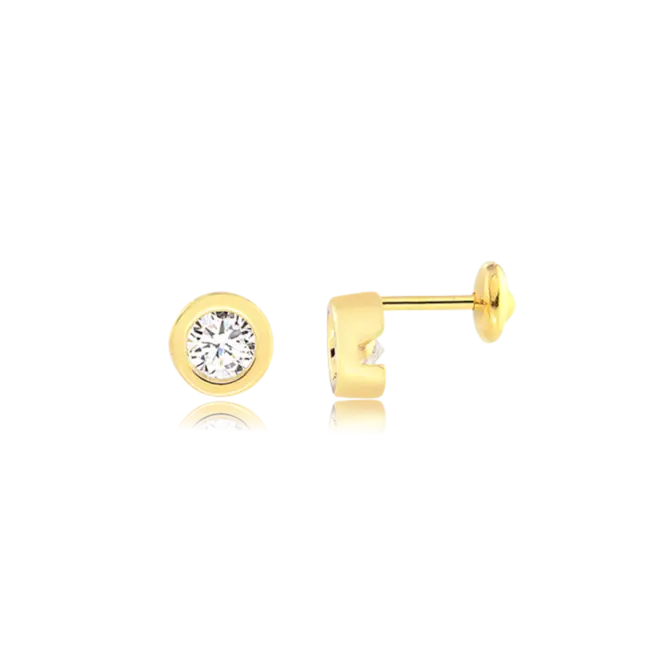 Brinco Ponto de Luz Redondo 5mm Folheado a Ouro 18k