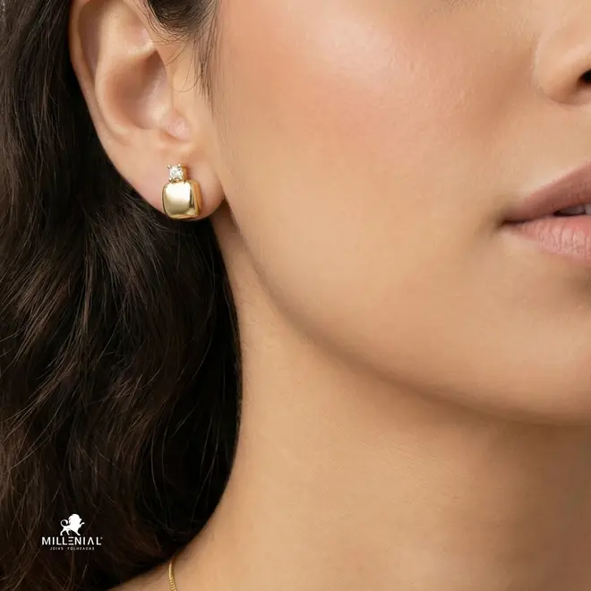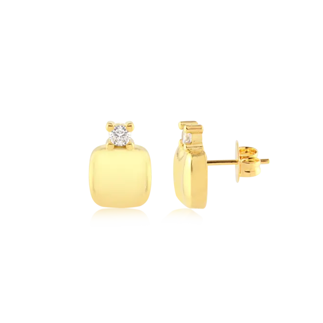 Brinco Quadrado Liso Ponto de Luz Folheado a Ouro 18k