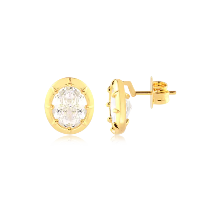 Brinco Zircônia Oval Folheado a Ouro 18k