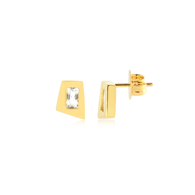 Brinco Zircônia Retangular Folheado a Ouro 18k