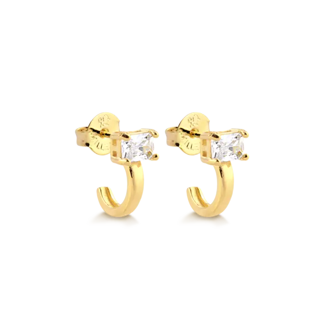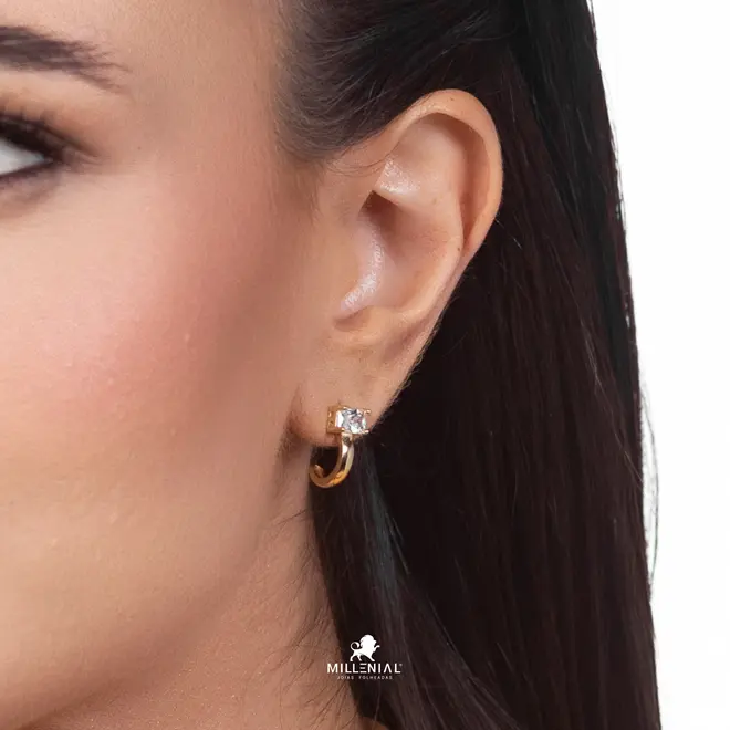 Brinco Zircônia Zircônia Retangular Folheado a Ouro 18k