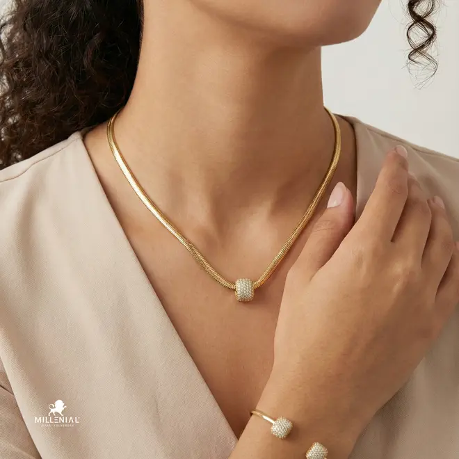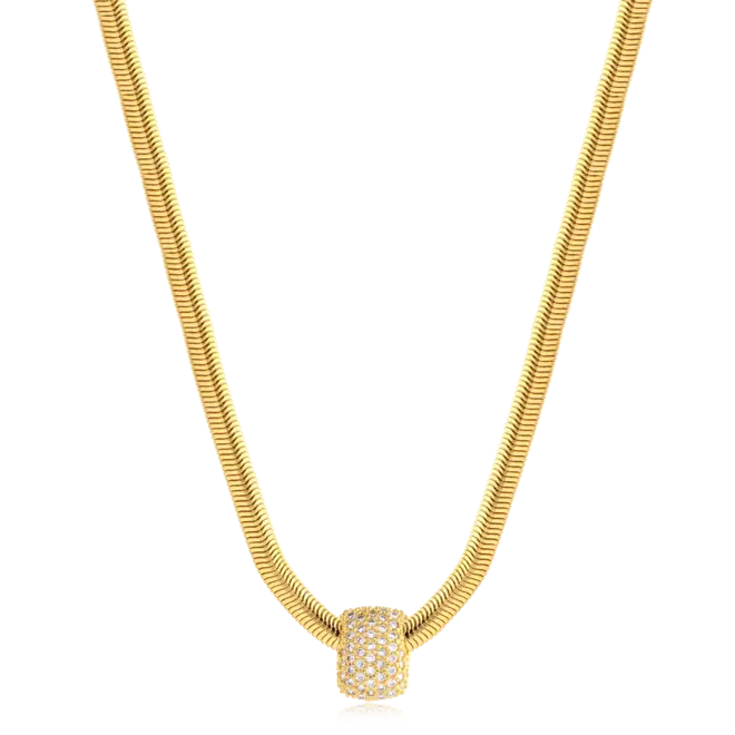 Gargantilha Cobra Retangular Cravejado Folheado a Ouro 18k