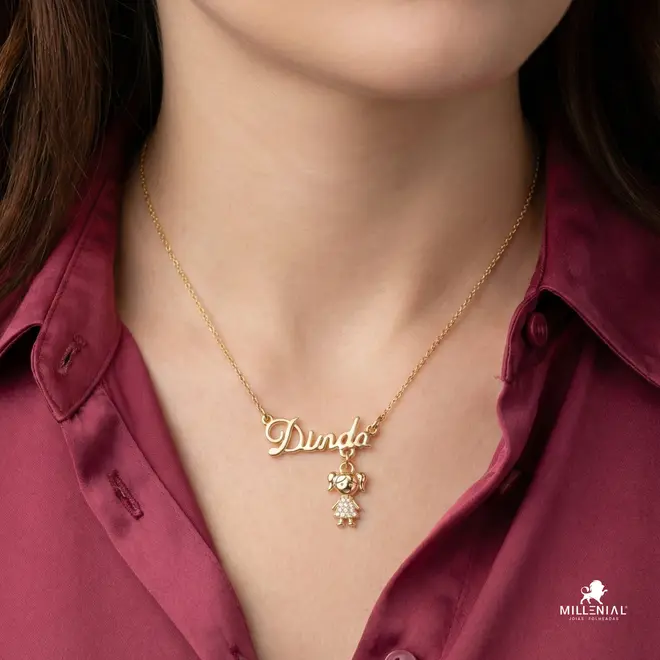 Gargantilha Dinda Menina Cravejada de Zircônia Folheada a Ouro 18k